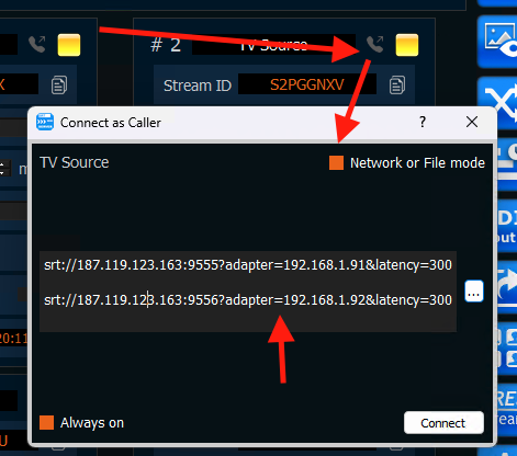 we read SRT url by TWO networks adapters (192.168.1.91 & 192.168.1.92)