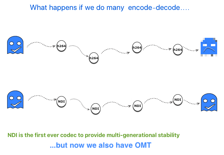 In contrast, NDI and OMT are specifically engineered for repeated use in production environments. You can route video signals between multiple devices and applications—without accumulating compression artifacts or noticeable quality loss.