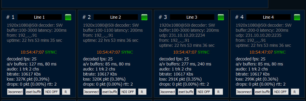 To validate the effectiveness of this method, a stress test was conducted: four channels were streamed via SRTStreamerPRO for 20 hours.