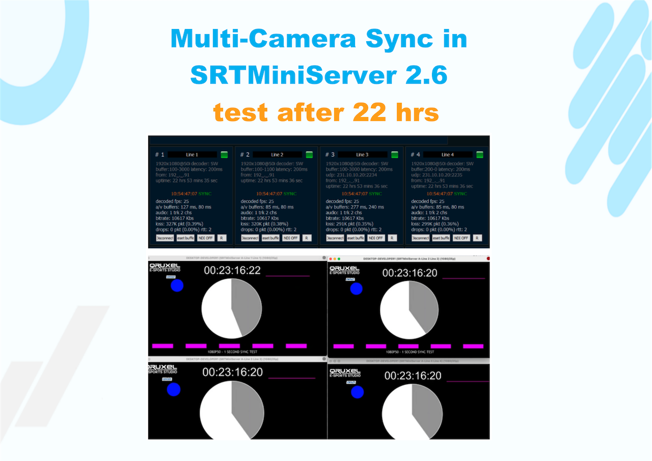 It is important to note that while our internal testing utilized SRTStreamerPRO for its seamless integration, the synchronization engine in SRTMiniServer 2.6 is designed for broad compatibility.